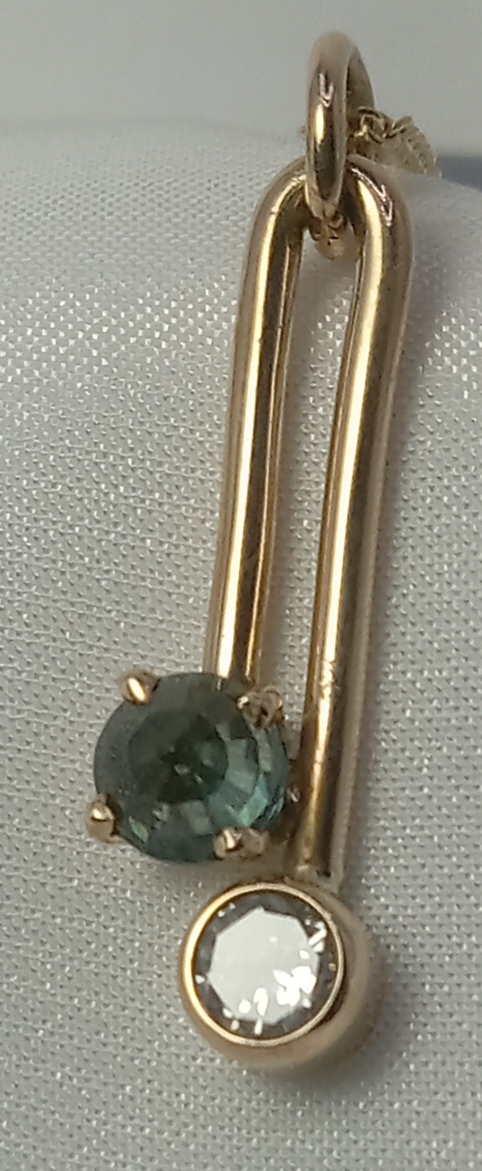 14 karats yellow gold diamond and sapphire pendant and chain.